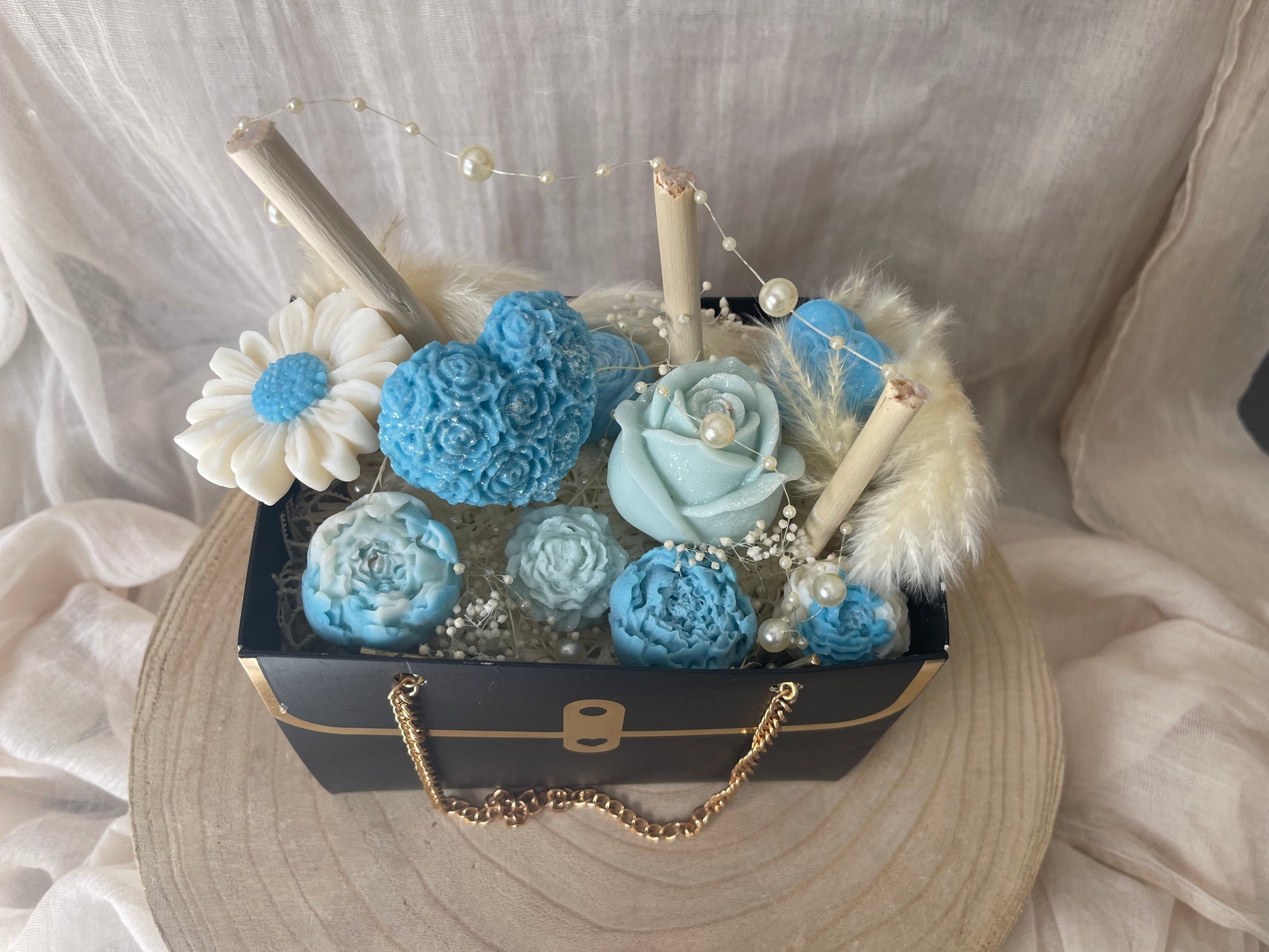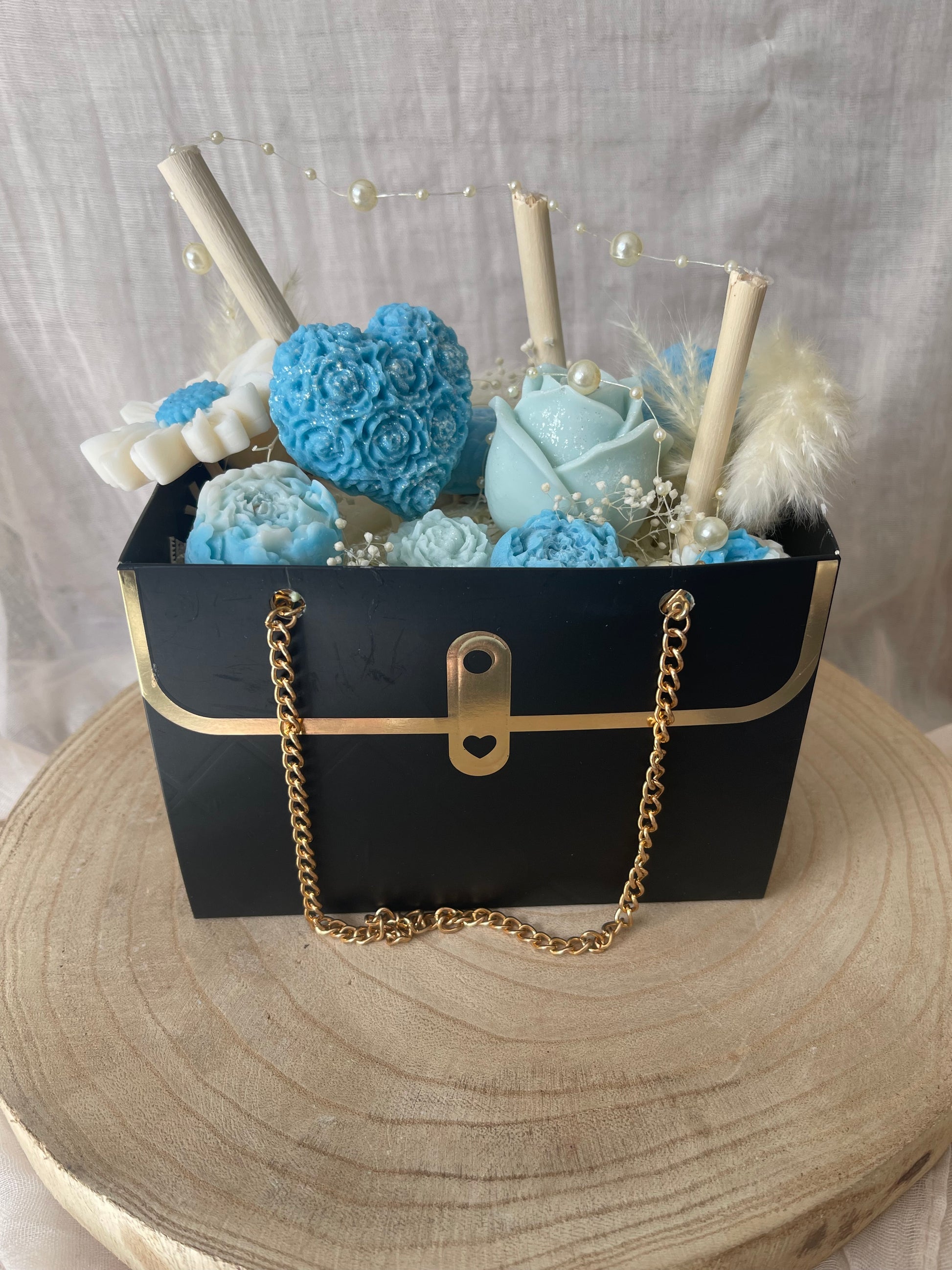 Avec son décor bleu et blanc, elle apporte une touche élégante à n'importe quelle pièce. Aussi, le sac à main inclus peut être réutilisé comme un joli accessoire de décoration. Offrez ce cadeau unique et parfumé à un être cher.