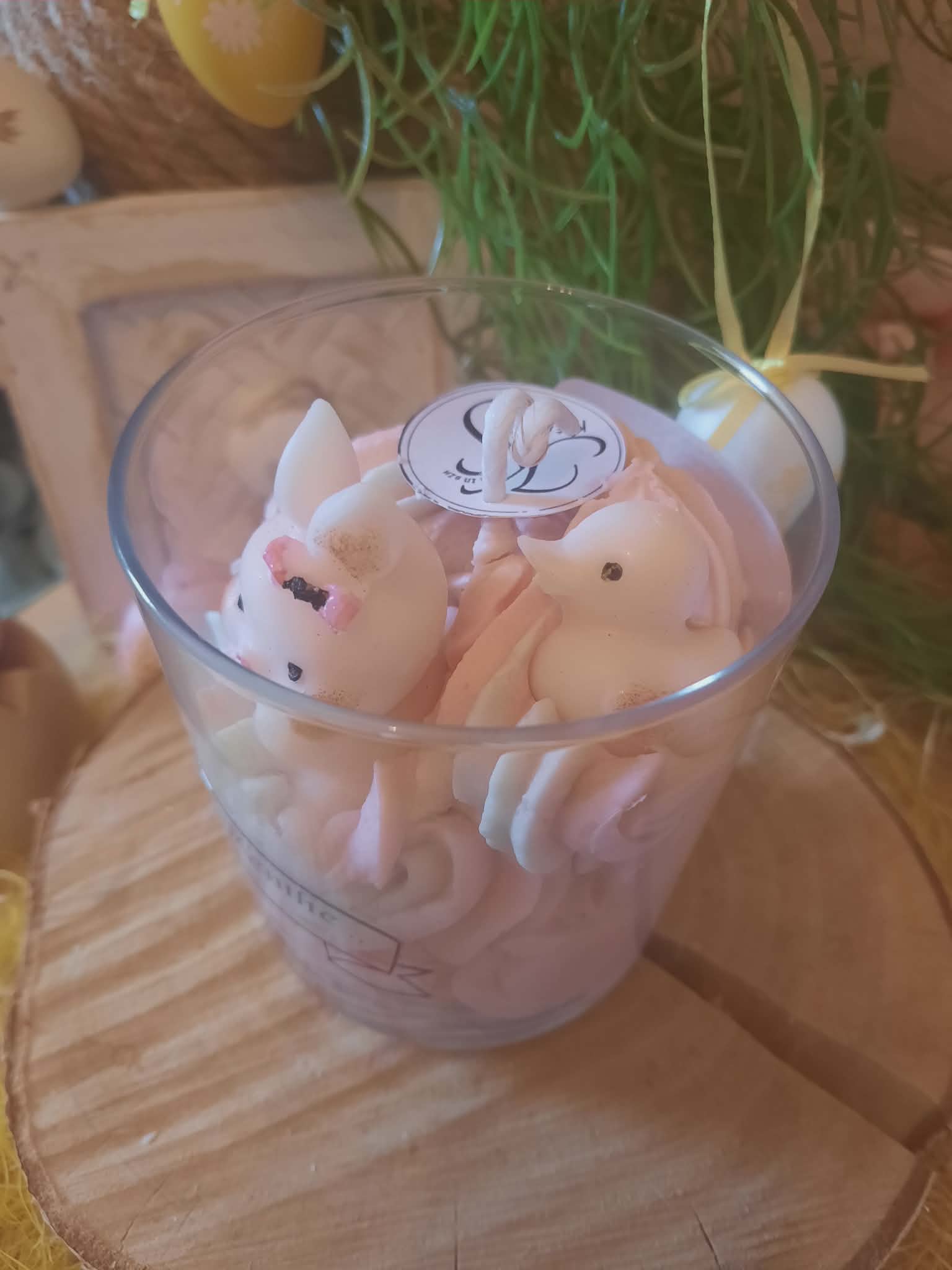 Sublimez votre table festive avec cette bougie décorée d'un adorable lapin et d'un petit caneton.