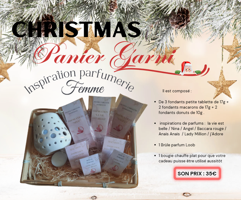 Offrez un cadeau d’exception avec ce panier garni n°10, composé de fondants parfumés délicats et d’un brûle-parfum élégant. Inspiré des créations des grands parfumeurs féminins, ce coffret allie raffinement et douceur pour enchanter vos proches. Parfait pour créer une ambiance parfumée et chaleureuse, il sublime chaque instant avec sophistication.