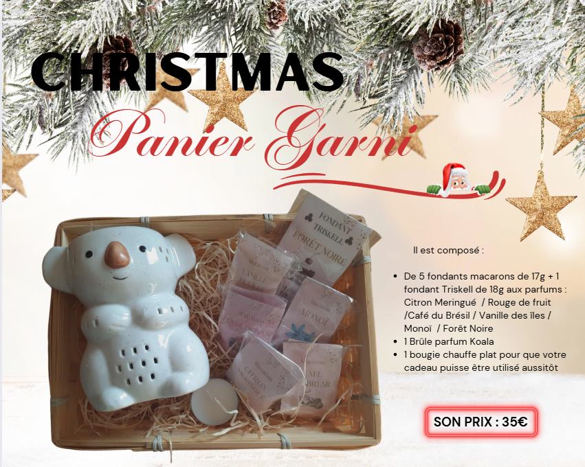 Offrez un panier garni spécialement conçu pour les amateurs de fondants parfumés. Chaque composition associe plusieurs fragrances envoûtantes, accompagnées d’un brûle-parfum charmant, parfait pour créer une ambiance chaleureuse. Ce cadeau raffiné ravira vos proches et apportera une touche délicate sous le sapin.