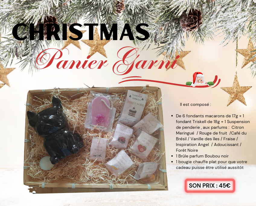 Offrez un panier garni spécialement conçu pour les amateurs de fondants parfumés. Chaque composition associe plusieurs fragrances envoûtantes, accompagnées d’un brûle-parfum charmant, parfait pour créer une ambiance chaleureuse. Ce cadeau raffiné ravira vos proches et apportera une touche délicate sous le sapin.