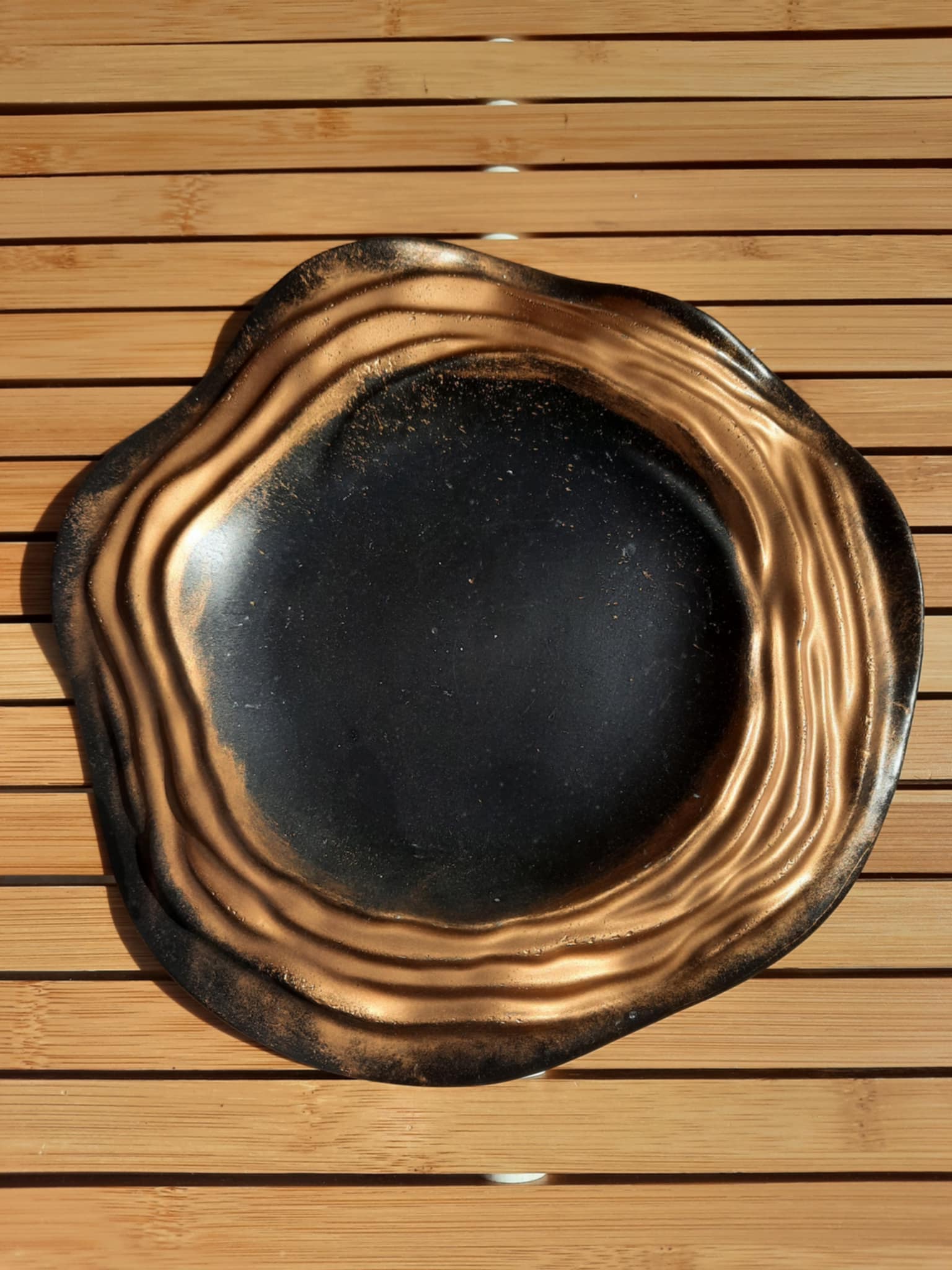 Ce plateau ondulé en jesmonite allie élégance et modernité grâce à son design chic noir et or. Sa finition sophistiquée apporte une touche raffinée à votre intérieur, tandis que sa conception résistante garantit une utilisation durable. Parfait pour présenter objets décoratifs avec style.