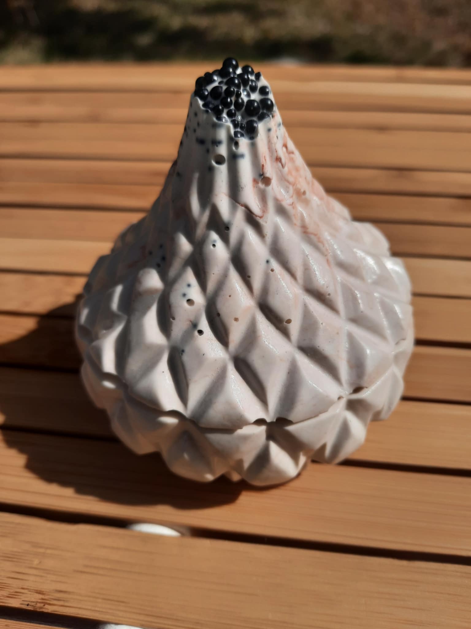 Cette boîte à bijoux façon Tajine façonnée artisanalement en jesmonite avec son couvercle orné de petites perles noire, allie esthétisme et fonctionnalité. Chaque pièce unique, réalisée avec soin et passion, offre un design distinct permettant de ranger élégamment vos bijoux ou autres petits objets précieux. Sa matière résistante garantit une longue durée d’utilisation tout en apportant une touche contemporaine à votre intérieur.