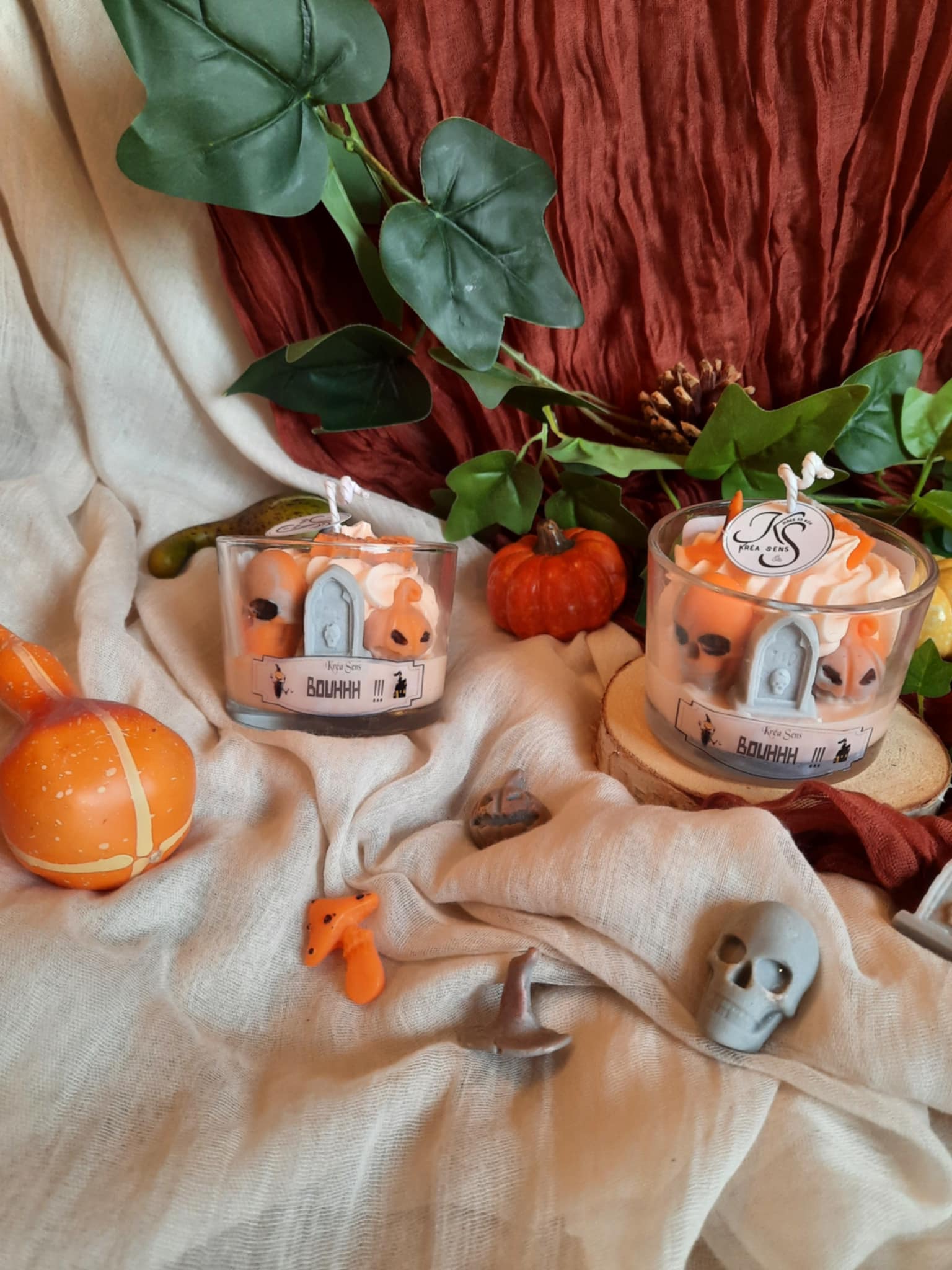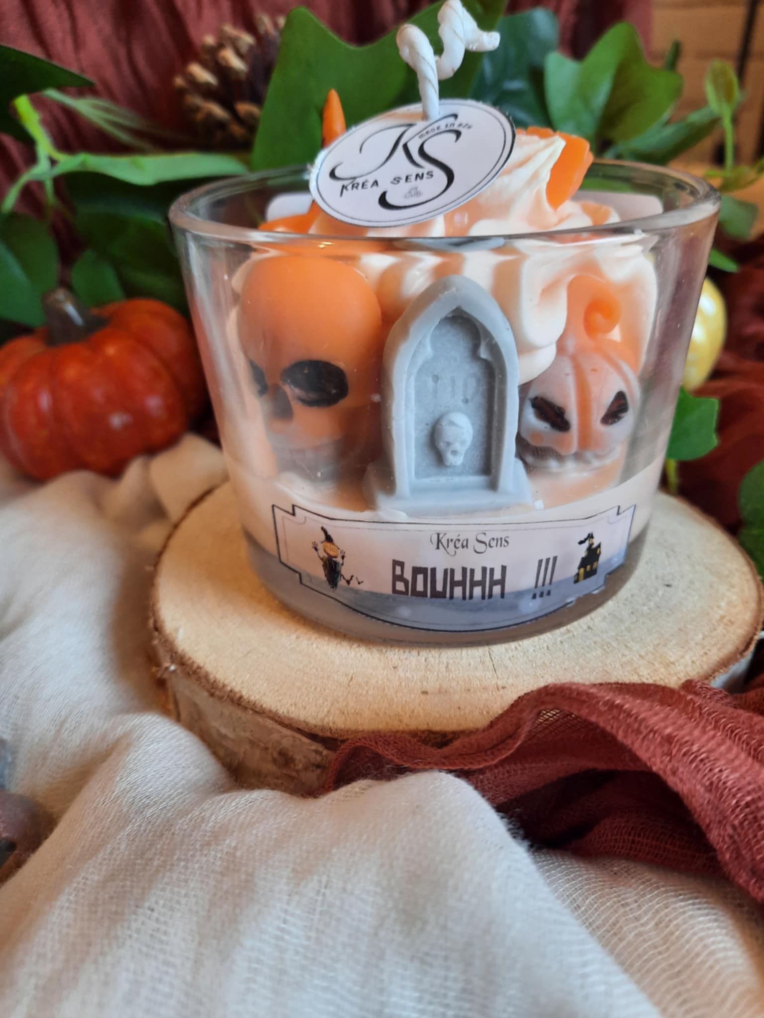Découvrez la bougie d'Halloween "Bouhhhhh !!!!!", aux notes envoûtantes et mystérieuses de fruit du dragon.